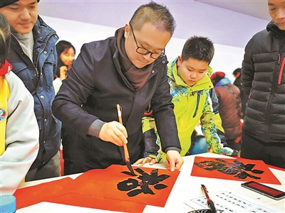 “沒想到這么火爆,我們帶的紙全部寫光了,還不夠,大伙搶著要。”中國(guó)書協(xié)會(huì)員、平谷書法院院長(zhǎng)劉建豐說,現(xiàn)場(chǎng)的火爆情況令他們始料未及。除了準(zhǔn)備好的3萬多幅“福”字和春聯(lián),書法家們又現(xiàn)場(chǎng)創(chuàng)作了約3000幅“福”字。
