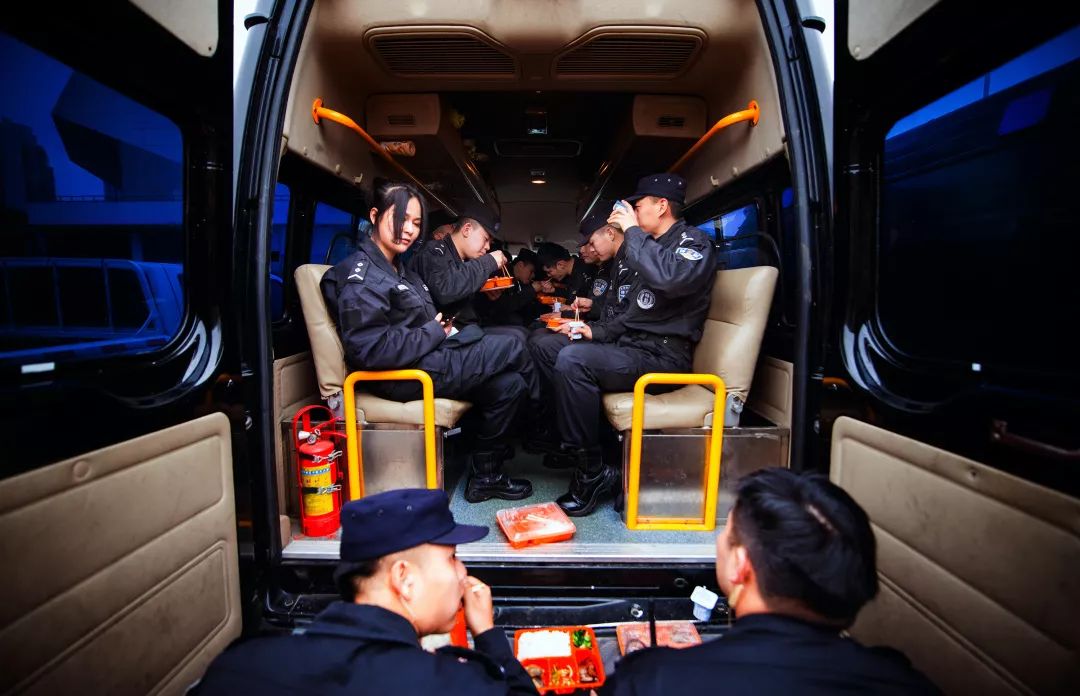 2019-01-30,江蘇省太倉市。安保人員在執行任務時就地晚餐。作者:漫畫旅館