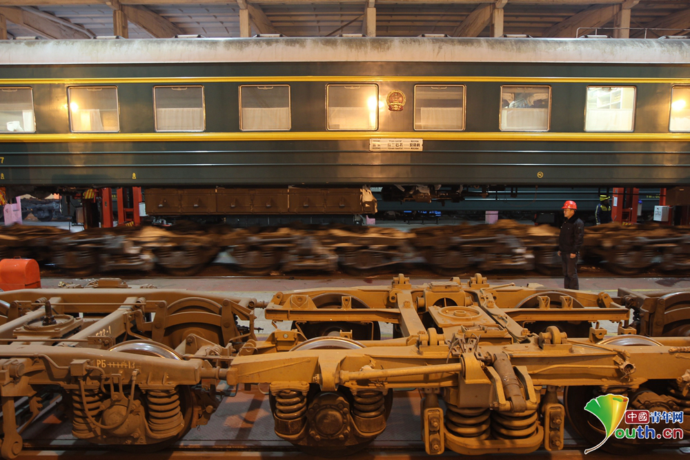 整個換輪過程持續1個小時左右,車廂里的旅客幾乎感覺不到車體的晃動。“北京至莫斯科的K3/4次旅客列車是行駛出國門的車輛,我們要確保運行的絕對安全,我們的檢修與工作質量代表著國家的形象,不能有分毫的失誤。”