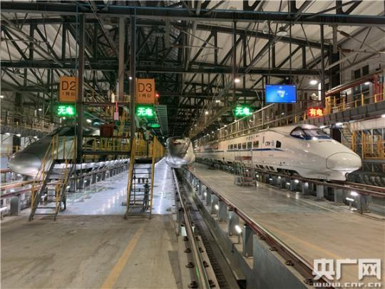 高鐵白天在線(xiàn)路上飛馳,夜晚才會(huì)進(jìn)入動(dòng)車(chē)所。因此,每天下午5點(diǎn)半到次日凌晨的這段時(shí)間成了郭志華和同事們最忙碌的時(shí)刻。