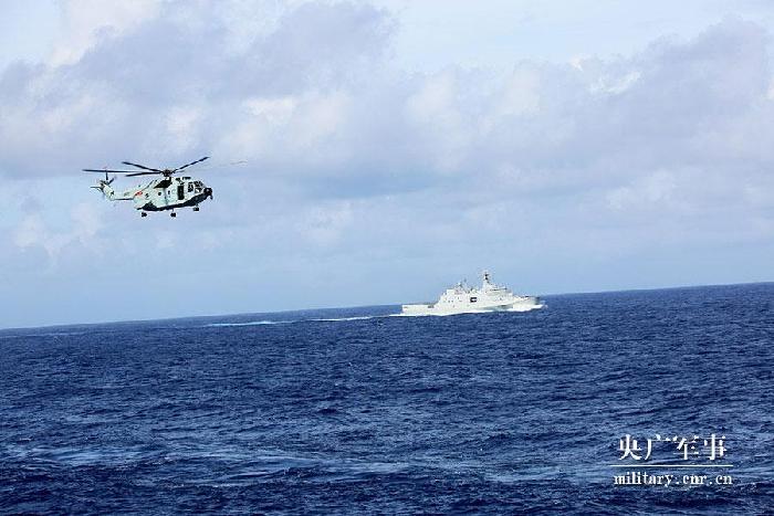 艦載直升機(jī)搜索可疑商船 謝芳攝