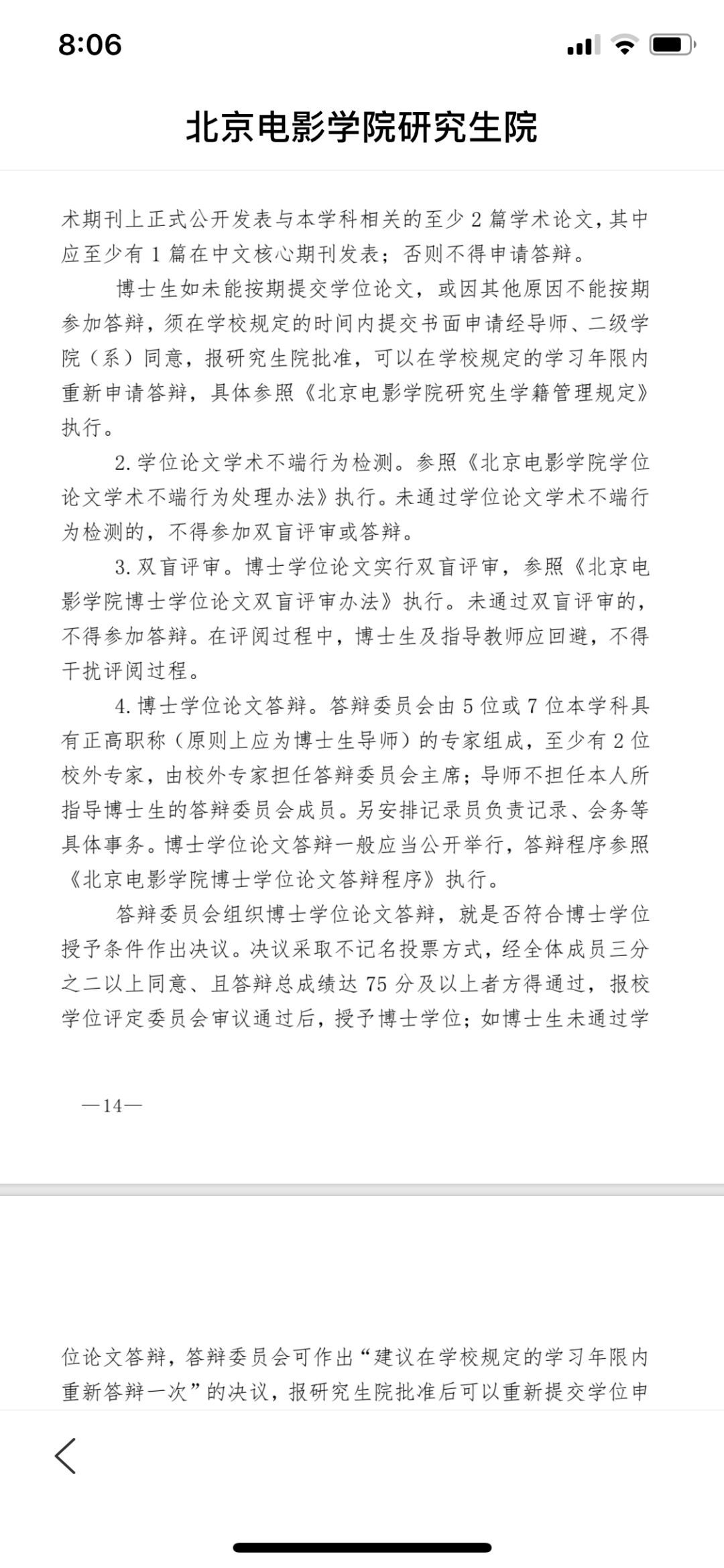 新聞縱橫編輯在北京電影學院的官網上,查到了博士學位申請的相關規定。翟天臨需要在答辯前,在國內一級刊物或國際核心刊物上發表或被接受發表至少一篇入學后獨立撰寫的學術論文。寫出具有博士水平的學位論文;也就是說,他必須具有博士水平論文的寫作能力,由指導教師推薦,才能可提出學位申請,這是第一步。