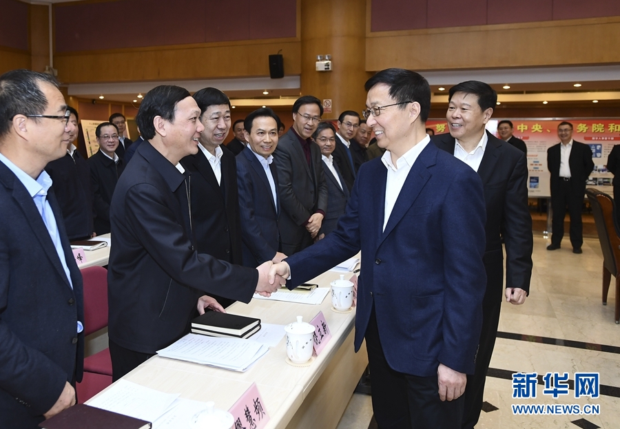 2月18日,中共中央政治局常委、國務院副總理韓正到國家稅務總局調研并主持召開座談會。 新華社記者謝環馳攝