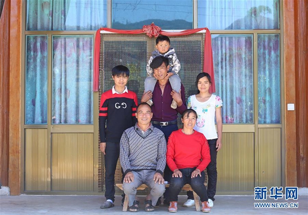 云南省施甸縣由旺鎮楊家社區村民蔣朋玉(前排左)一家的“全家?!保?月8日攝)。新華社發(楊董清 攝)