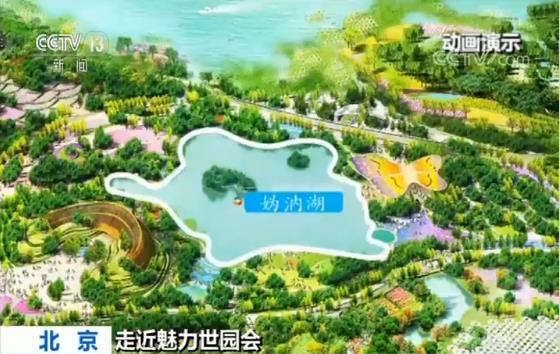 央視記者羅子瑛說,幾年前媯水河的南岸還是一片田野,2014年5月當(dāng)園區(qū)的規(guī)劃者走到媯水河的拐彎處,這個位置,往北他們看到了媯水河最為寬闊的水面,而水面之上就是著名的冠帽山,往西北方向看則是小海坨山,山川形勝,圖畫天然。從這個被規(guī)劃者稱為“自然感動點”的位置出發(fā),引山水入園,沿著兩條延長線進(jìn)行規(guī)劃,形成了現(xiàn)在園區(qū)的兩條軸線,山水園藝軸和世界園藝軸。