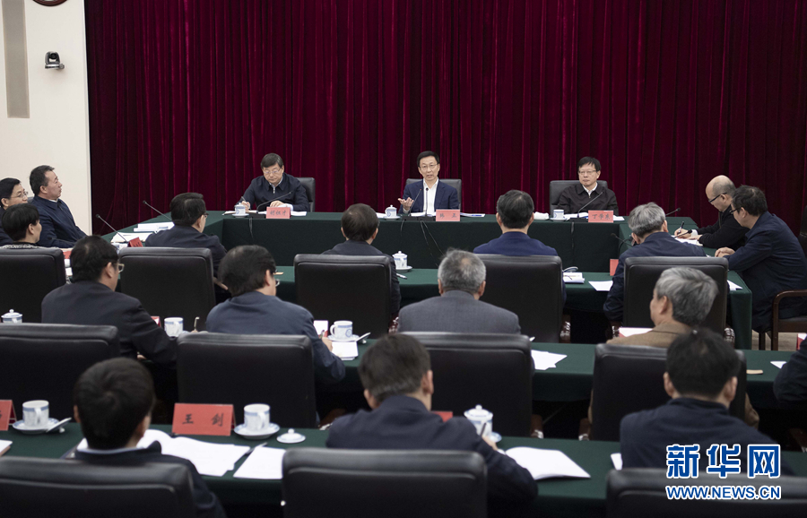 3月22日,中共中央政治局常委、國務院副總理韓正到生態環境部調研并主持召開座談會。 新華社記者 李濤 攝