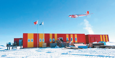 雪鷹601飛機(jī)飛過(guò)中國(guó)南極昆侖站。新華社發(fā)(資料圖片)