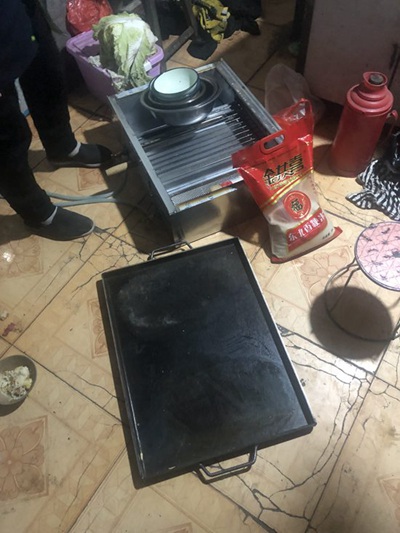 以前和雇用的司機一起跑活兒,吃飯就圖省事。堵車了他們用冷水直接泡方便面吃。妻子跟車后,王紅保不想讓她跟著吃苦,就把家里的鍋碗瓢盆、液化氣爐灶、篦子、高壓鍋全部搬上車,再帶一大堆易于保存的食物,比如臘肉、煎餅。堵車或是卸貨等貨時,他就開始做飯,土豆排骨、蒜苔臘肉、燉魚燉排骨、餃子,什么都做。妻子跟車兩三年,胖了二三十斤。