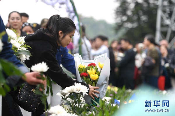 3月29日,在廣西柳州市西山墓園,親屬向逝者獻花。新華社發(黎寒池 攝)