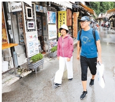兩名中國(guó)游客在波黑薩拉熱窩老城區(qū)游覽。新華社發(fā) 哈里斯·梅米亞攝