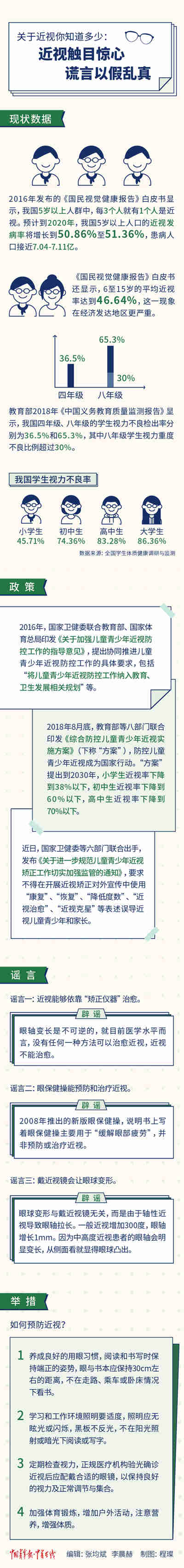 事實上,我國防控近視的舉措早已開始。2007年《中共中央國務院關于加強青少年體育增強青少年體質的意見》(中發[2007]7號)發布后,《中小學學生近視眼防控工作方案》就對保護學生視力提出了工作措施,包括保證睡眠、建立視力定期檢測制度、堅持每天一小時體育鍛煉制度等。