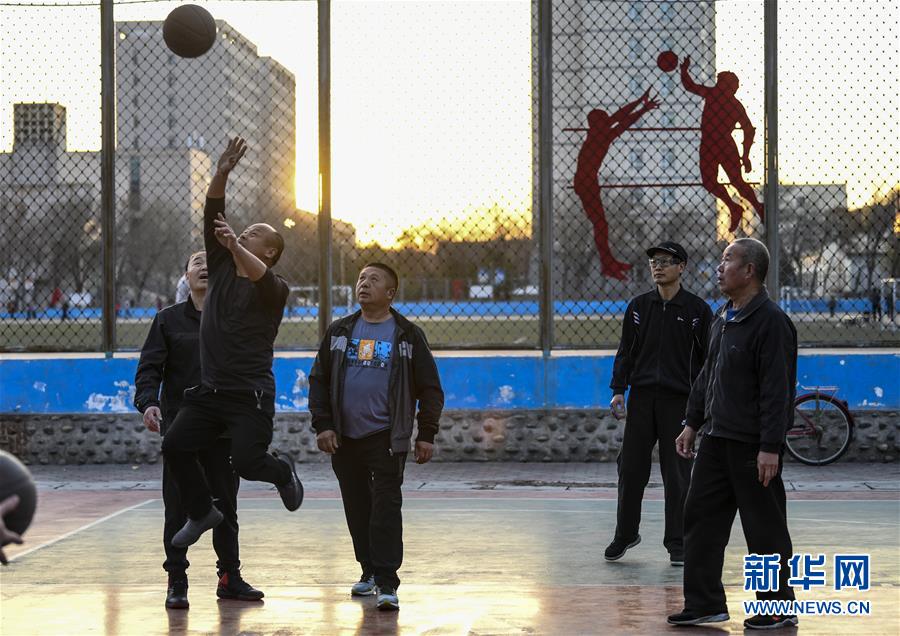 市民在新疆石河子大學(xué)的一處籃球場(chǎng)晨練(4月10日攝)。新華社記者 王菲 攝