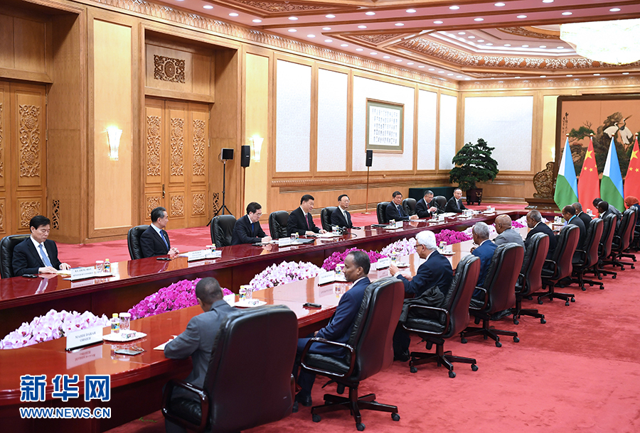 4月28日,國家主席習近平在北京人民大會堂會見吉布提總統蓋萊。 新華社記者 翟健嵐 攝