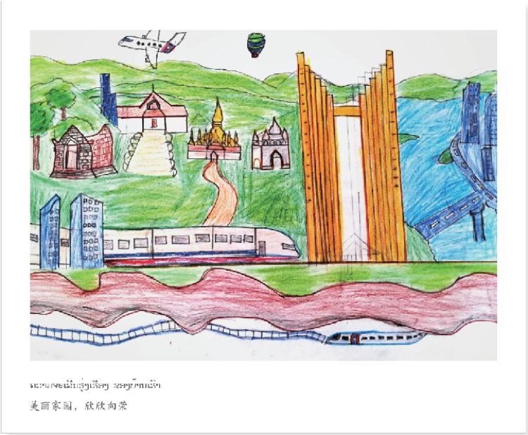 58幅天真爛漫的畫作,寓意中老建交58周年的深情厚誼。孩子們希望通過畫中的學(xué)校、家鄉(xiāng)、世界和夢想,展示“一帶一路”為他們的生活帶來的變化,與習(xí)近平主席分享心中滿滿的喜悅和幸福。