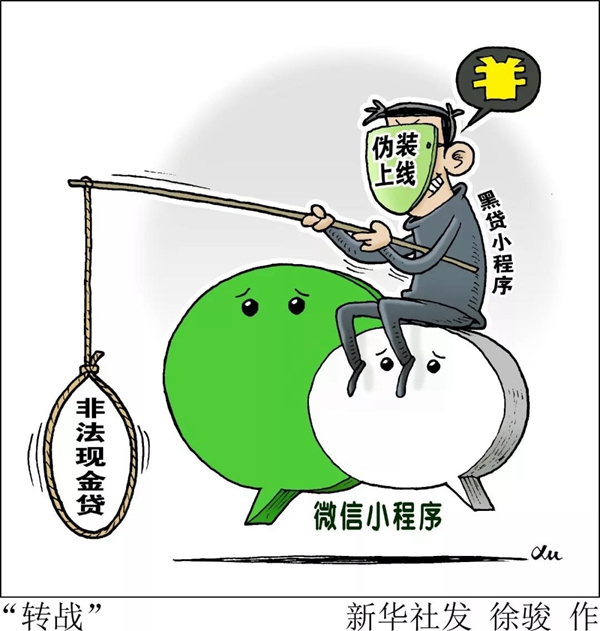 ——“套路貸”等違規(guī)App的“中轉(zhuǎn)站”。在多個互聯(lián)網(wǎng)公司的小程序中搜索“貸款”二字,填寫相關(guān)職業(yè)、家庭、財(cái)產(chǎn)等信息后,半月談記者收到了營銷人員的微信或QQ號,添加后發(fā)現(xiàn)對方推薦的貸款工具實(shí)為“套路貸”。同時一些用戶反映,有的小程序成涉黃、涉賭的“中轉(zhuǎn)站”,通過小程序吸引人加入指定聊天群后,接下來的就是色情交易、賭博活動等。