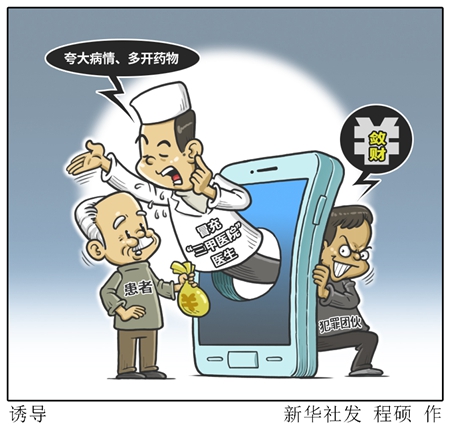 “新華視點(diǎn)”記者追蹤調(diào)查發(fā)現(xiàn),該犯罪團(tuán)伙把普通民營(yíng)醫(yī)院包裝成擁有“名醫(yī)”的“三甲醫(yī)院”,通過(guò)搜索競(jìng)價(jià)排名尋找病患對(duì)象,再雇用沒(méi)有行醫(yī)資質(zhì)的“醫(yī)生”誘導(dǎo)其接受高收費(fèi)治療,甚至開出許多對(duì)病情毫無(wú)作用的藥物,從而達(dá)到斂財(cái)?shù)哪康摹?/p>