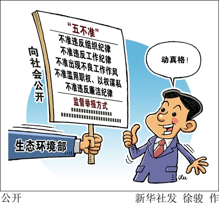 根據公告,公眾如發現生態環境部強化監督工作組成員存在違反相關紀律作風規定情形或形式主義、官僚主義等方面的問題,可向中央紀委國家監委駐生態環境部紀檢監察組反映。舉報郵箱:jb@mep.gov.cn;舉報通信地址:北京市西直門內南小街115號中央紀委國家監委駐生態環境部紀檢監察組辦公室,郵編:100035。