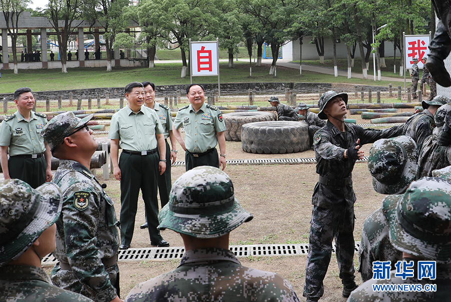 5月21日,中共中央總書記、國家主席、中央軍委主席習(xí)近平到陸軍步兵學(xué)院視察。這是習(xí)近平觀看學(xué)員進(jìn)行極限訓(xùn)練。新華社記者 李剛 攝