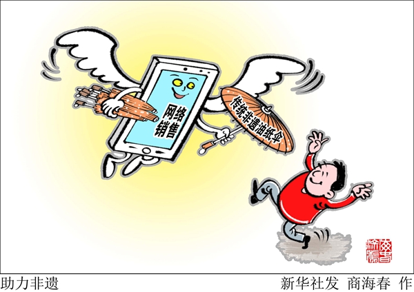 漫畫:助力非遺 新華社發 商海春 作