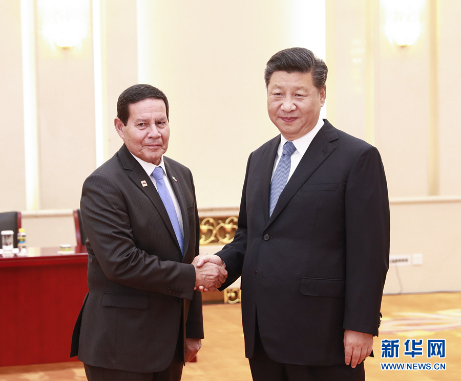 5月24日,國(guó)家主席習(xí)近平在北京人民大會(huì)堂會(huì)見(jiàn)巴西副總統(tǒng)莫朗。新華社記者 龐興雷 攝
