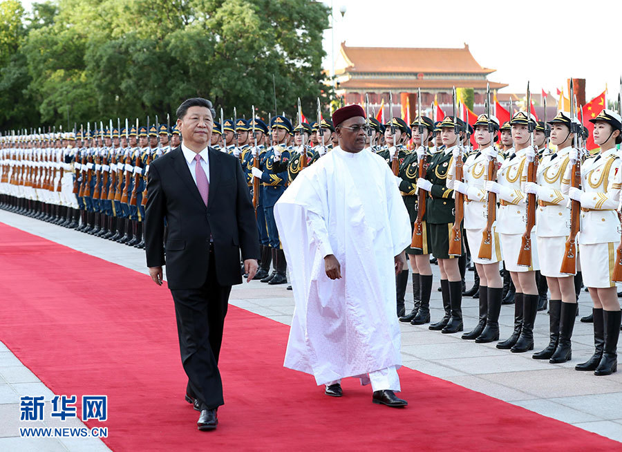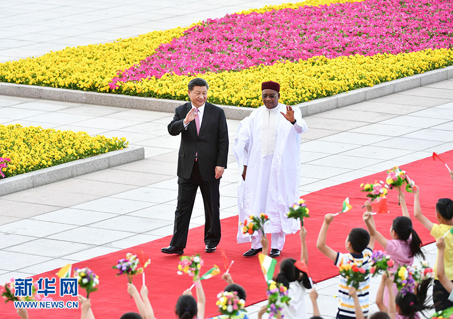 5月28日,國家主席習近平在北京人民大會堂同尼日爾總統伊素福舉行會談。這是會談前,習近平在人民大會堂東門外廣場為伊素福舉行歡迎儀式。 新華社記者 劉衛兵 攝