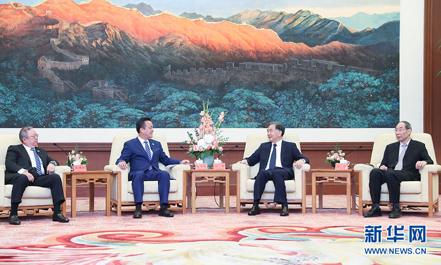 ??? 5月29日,中共中央政治局常委、全國(guó)政協(xié)主席、中國(guó)和平統(tǒng)一促進(jìn)會(huì)會(huì)長(zhǎng)汪洋在北京會(huì)見以姚志勝為團(tuán)長(zhǎng)的中國(guó)和平統(tǒng)一促進(jìn)會(huì)香港總會(huì)參訪團(tuán)全體成員。 新華社記者 姚大偉 攝