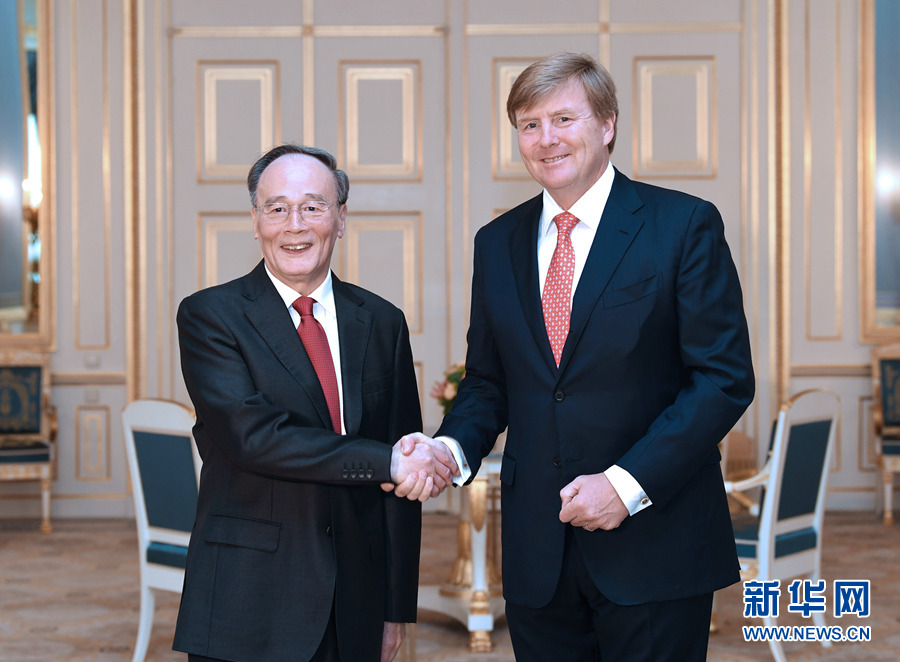 應荷蘭首相呂特邀請,國家副主席王岐山當地時間5月28日至30日訪問荷蘭,分別會見威廉-亞歷山大國王和呂特首相。這是5月29日,王岐山在海牙會見荷蘭國王威廉-亞歷山大。 新華社記者 饒愛民 攝