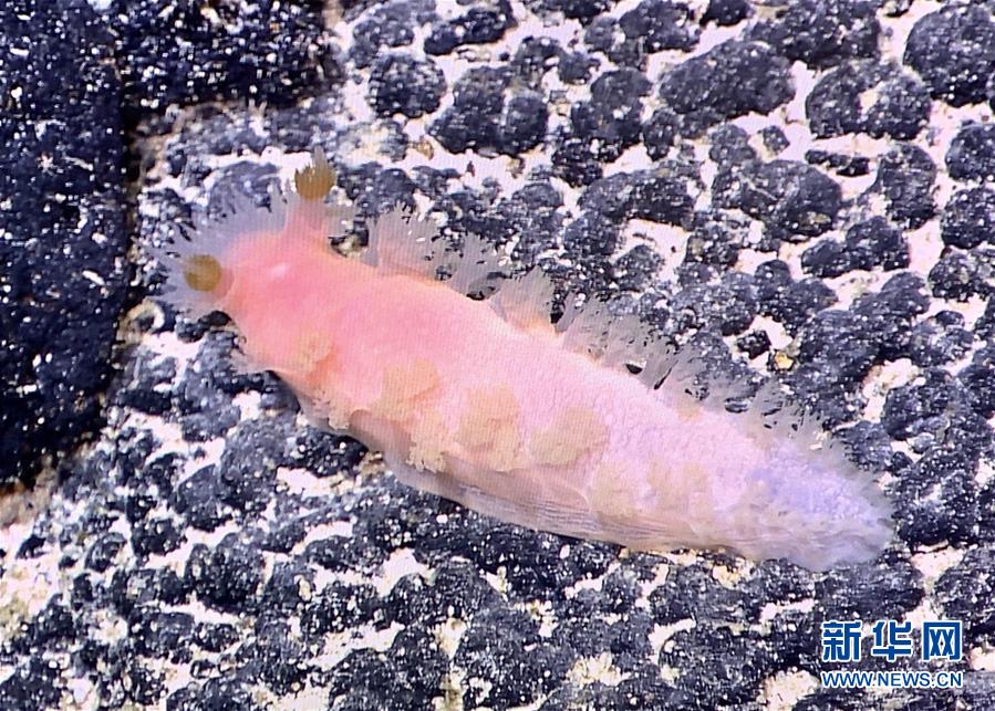 “發現”號遙控無人潛水器在海山拍攝到的海兔(5月27日攝)。新華社發
