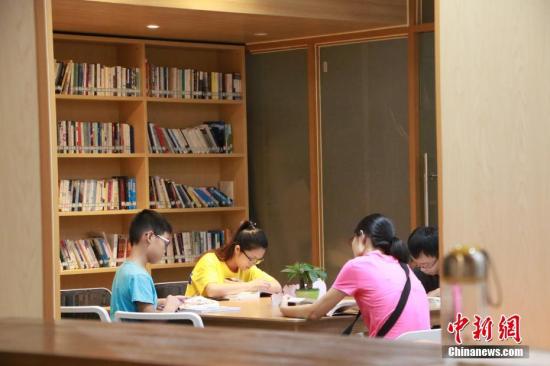 資料圖:數(shù)名讀者正在自助圖書(shū)館閱讀。中新社發(fā) 劉佩琦 攝