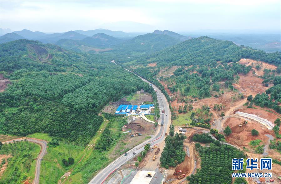 全州縣鳳凰嘴渡口正在修建的大橋(6月29日無(wú)人機(jī)拍攝)。新華社記者 周華 攝