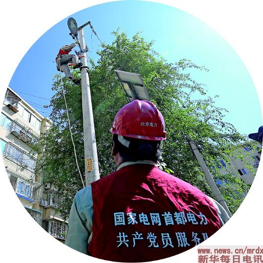 脫下工作服、換上紅馬甲。華燈班在2005年成立了共產黨員服務隊,為管轄范圍以外缺少照明的胡同、老舊小區、公廁加裝路燈,照亮百姓的出行路。