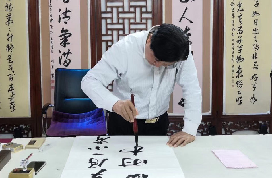 書法是中華優秀傳統文化的精髓,用書法作為載體,形象展現習總書記用過的典故,這是一位書者樸素的初心,也代表了廣大群眾對習總書記的拳拳敬意。“習總書記是新時代中國的掌舵者,是人民的領路人,是一位英明領袖、偉大統帥。作為一個普通人,我應該自覺地學習和宣傳習總書記的重要講話;作為一名酷愛書法的人,通過書法的線條、濃淡、頓挫變化,再現習總書記用典的形式和內涵之美,我覺得這是我應該做的;作為新時代中國人,我們要在習總書記的帶領下奮勇向前,實現民族復興的偉大中國夢!”朱時華說。