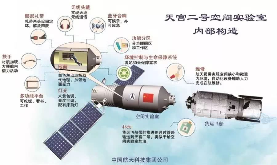 天宮二號空間實驗室內部構造(來源:中國航天科技集團微信公眾號)