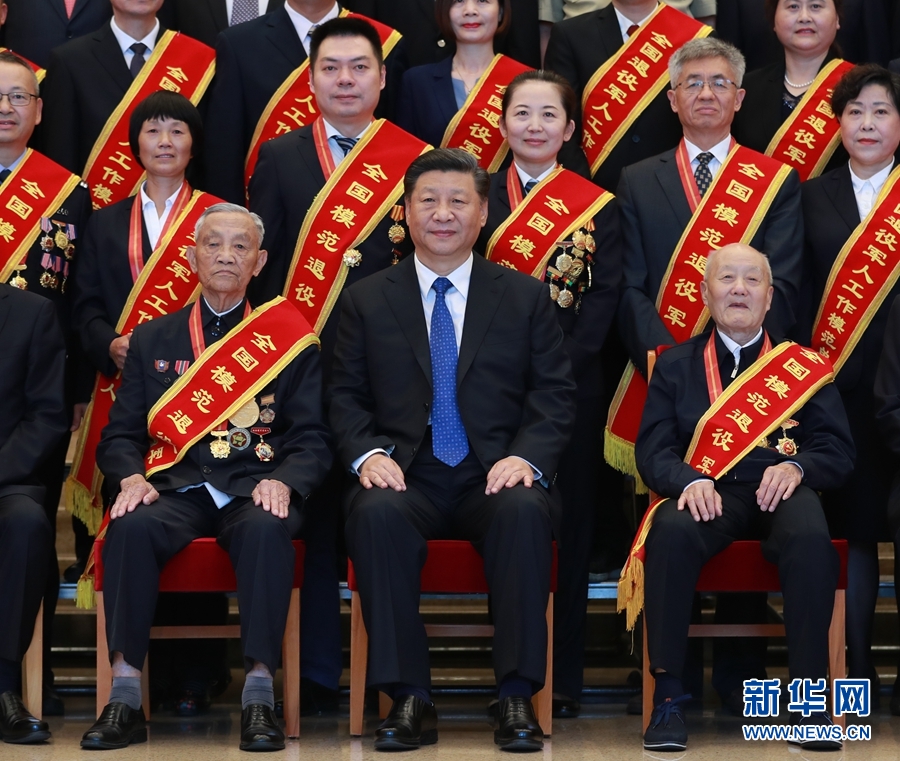 上午11時,習(xí)近平等來到京西賓館會議樓前廳,全場響起熱烈掌聲。習(xí)近平等同代表們親切握手,代表們紛紛向總書記問好。看到94歲的老英雄張富清,習(xí)近平總書記俯下身,雙手緊握住老人的手,同他親切交談并致以誠摯問候。隨后,習(xí)近平等同大家合影留念。