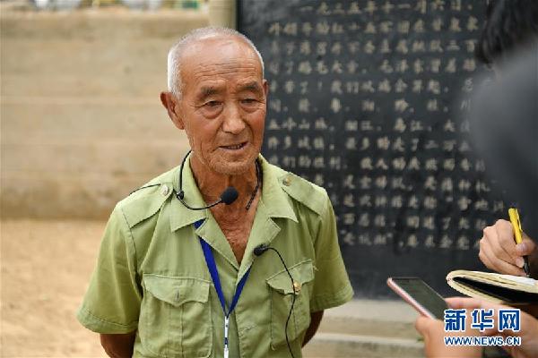 8月8日,83歲的甘泉縣象鼻子灣村村民賈生貴講述當年“雪地講話”的情形。新華社記者 張博文 攝