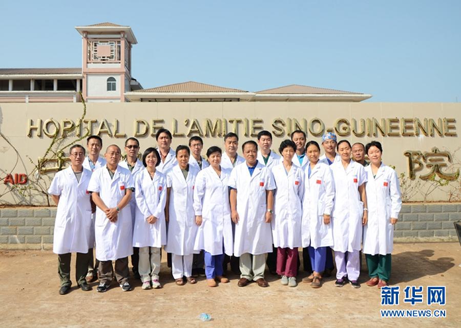 這是第23批北京安貞醫院援幾內亞醫療隊在幾內亞科納克里的中幾友好醫院前合影的資料照片。新華社發