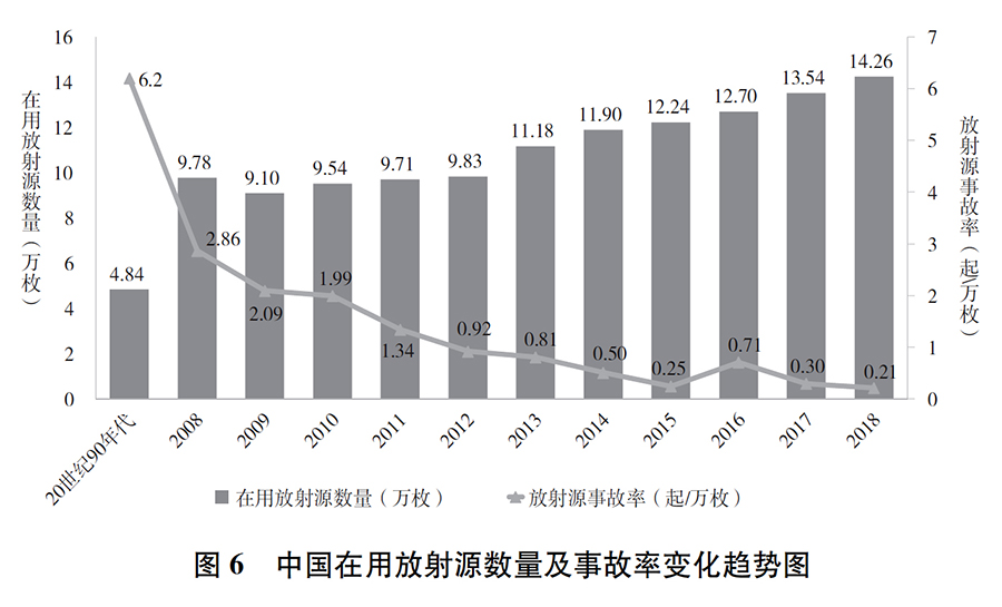 核技術(shù)利用安全水平大幅提升。對放射源實行從“搖籃”到“墳?zāi)埂钡娜^程動態(tài)管理,將所有涉源單位納入政府監(jiān)管范圍,建立國家核技術(shù)利用管理數(shù)據(jù)庫,實施放射源安全提升行動,實現(xiàn)高風(fēng)險移動源在線實時監(jiān)控,提高核技術(shù)利用安全水平。截至2019年6月,中國在用放射源142607枚,各類射線裝置181293臺(套),從事生產(chǎn)、銷售、使用放射性同位素和射線裝置的單位共73070家,放射源和射線裝置100%納入許可管理,廢舊放射源100%安全收貯。放射源輻射事故年發(fā)生率持續(xù)降低,由20世紀(jì)90年代的每萬枚6.2起降至目前的每萬枚1.0起以下,達(dá)到歷史最低水平。