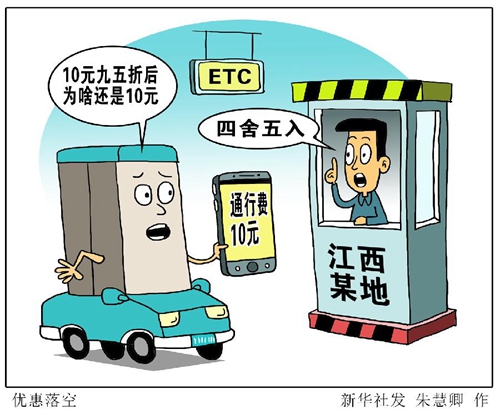 6日上午,國務(wù)院第七督查組驅(qū)車從南昌市出發(fā),來到70余公里外的共青城市。當(dāng)車駛出ETC專用收費(fèi)通道時(shí),電子屏上顯示的收費(fèi)金額是29元。收費(fèi)站工作人員說,這段路程不走ETC通道通行費(fèi)是30元。督查人員計(jì)算,30元打完九五折后應(yīng)收28.5元,但被系統(tǒng)“四舍五入”收了29元。隨后,督查組又從共青城市前往德安縣,原價(jià)10元的通行費(fèi)ETC折后依然收費(fèi)10元,沒有享受到任何優(yōu)惠。