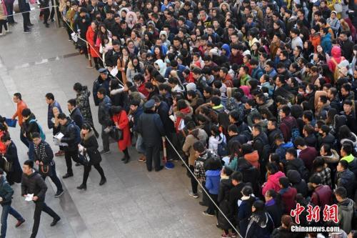 資料圖:山西太原一公務員考點,考生排隊準備進入考場。武俊杰 攝