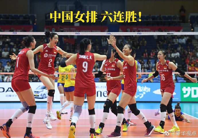 在22日進行的2019女排世界杯第6輪的比賽中,中國女排在札幌3:2險勝勁敵巴西隊,6戰全勝繼續保持不敗。5局比賽的局分分別為25:23、23:25、22:25、25:19和15:9。