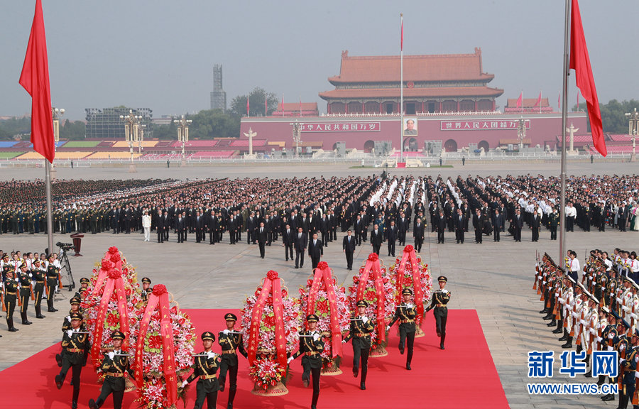 紀(jì)念碑前,4000多名各界代表手持鮮花,列隊肅立。他們中有年逾九旬的老戰(zhàn)士、老同志,有胸前佩戴著紅飄帶的烈士親屬,有國家勛章和國家榮譽稱號獲得者代表,有參加全國民族團結(jié)進步表彰大會的代表,有朝氣蓬勃的青年學(xué)生和少年兒童。