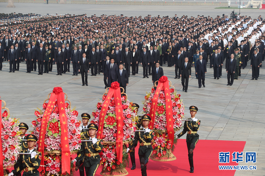 9月30日上午,習(xí)近平、李克強、栗戰(zhàn)書、汪洋、王滬寧、趙樂際、韓正、王岐山等黨和國家領(lǐng)導(dǎo)人來到北京天安門廣場,出席烈士紀(jì)念日向人民英雄敬獻花籃儀式。 新華社記者 申宏 攝