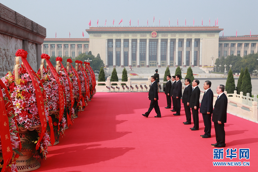 9月30日上午,習(xí)近平、李克強、栗戰(zhàn)書、汪洋、王滬寧、趙樂際、韓正、王岐山等黨和國家領(lǐng)導(dǎo)人來到北京天安門廣場,出席烈士紀(jì)念日向人民英雄敬獻花籃儀式。儀式前,習(xí)近平等來到毛主席紀(jì)念堂瞻仰毛澤東同志遺容。新華社記者 鞠鵬 攝