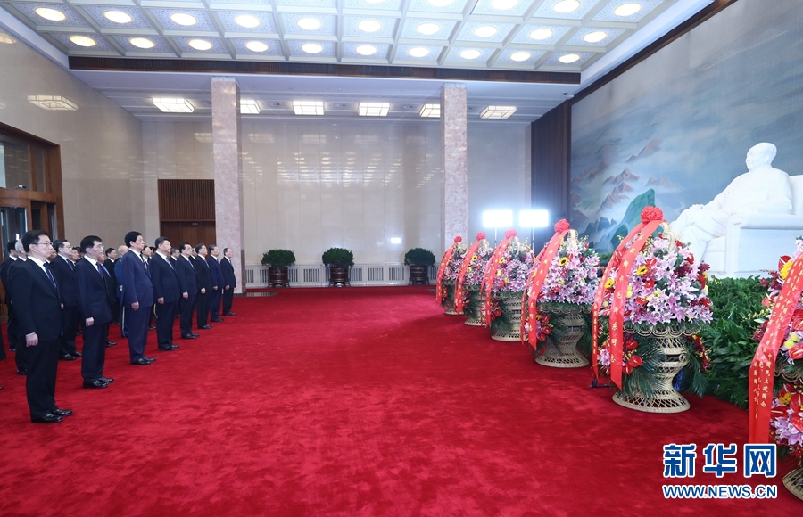 敬獻花籃儀式前,習(xí)近平、李克強、栗戰(zhàn)書、汪洋、王滬寧、趙樂際、韓正、王岐山等領(lǐng)導(dǎo)同志來到毛主席紀(jì)念堂。北大廳內(nèi),中共中央,全國人大常委會,國務(wù)院,全國政協(xié),中央軍委,各民主黨派、全國工商聯(lián)和無黨派愛國人士敬獻的花籃擺放在毛澤東同志坐像正前方。習(xí)近平等向毛澤東同志坐像三鞠躬,隨后來到瞻仰廳,瞻仰毛澤東同志遺容,表達對毛澤東同志等老一輩革命家的深切緬懷。