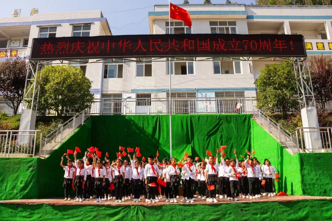 2019年9月30日,湖北利川。湖北利川元寶小學慶祝國慶。作者:龍斯斯