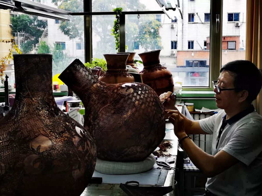 7月28日,北京。北京琺瑯廠(chǎng)的師傅正在制作工藝品。作者:齊天大圣