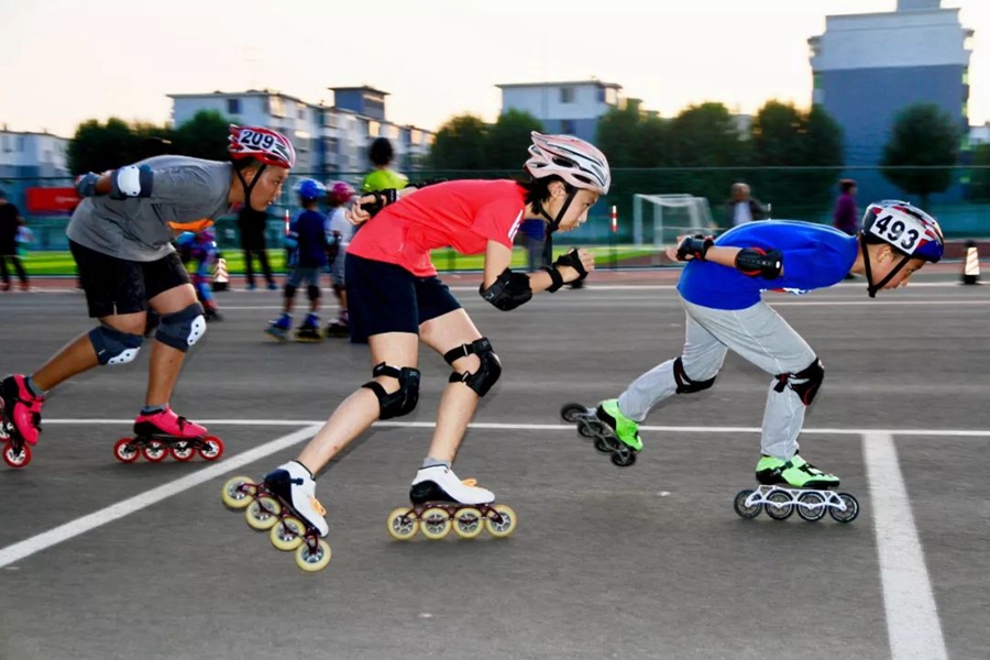 8月31日,遼寧沈陽(yáng)。少年們?cè)谶M(jìn)行輪滑訓(xùn)練,為冬季上冰打基礎(chǔ)。作者:周朋