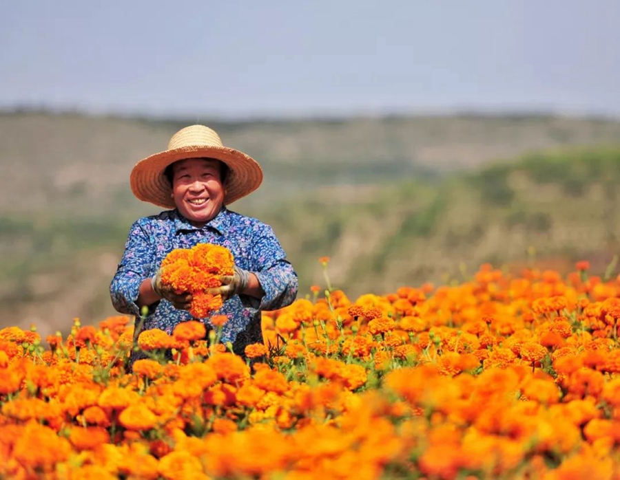 9月12日,寧夏彭陽(yáng)。種植萬(wàn)壽菊,不僅發(fā)展了旅游業(yè),也讓當(dāng)?shù)乩习傩者^(guò)上了好日子。作者:瑾