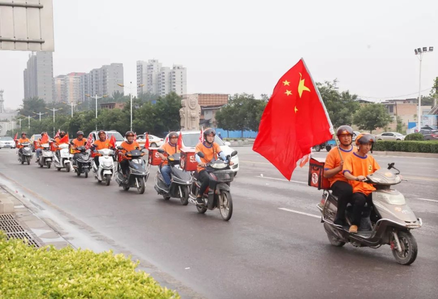 7月15日,山西臨汾。外賣(mài)小哥正在送餐。作者:秋天的楓葉