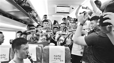 近日,閱兵結束后,聯合軍樂團多名成員在回撤高鐵上演奏并歌唱《鋼鐵洪流進行曲》的視頻在網上走紅。
